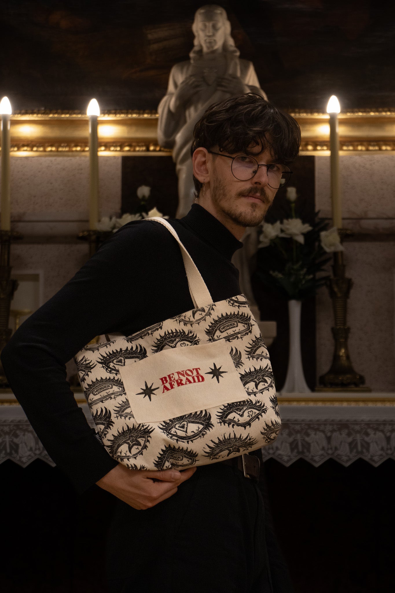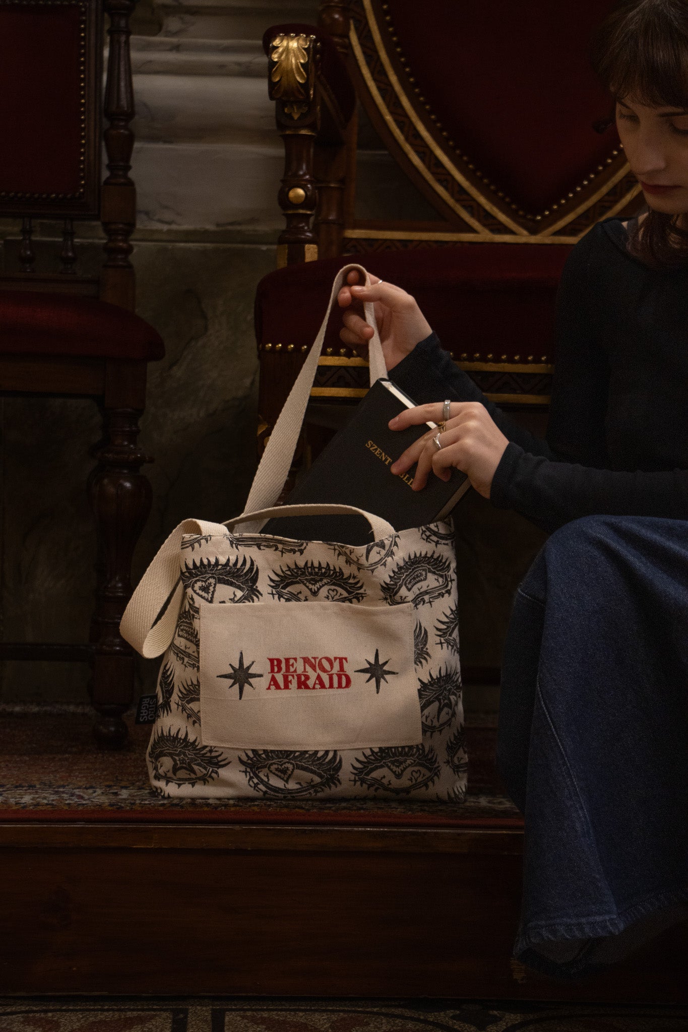 BE_NOT_AFRAID BLOCK PRINTED TOTE BAG