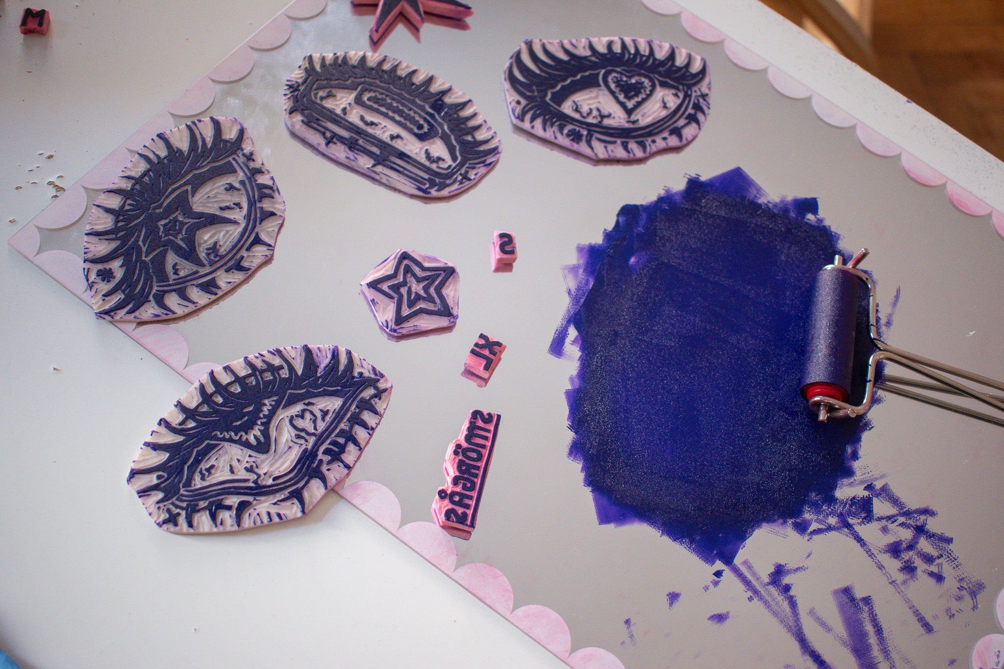 Block printing with lino cuts – my latest obsession. Each piece is carefully designed and handcrafted by me. Take a look at my Block Printing gallery to see how your clothes are made! <3